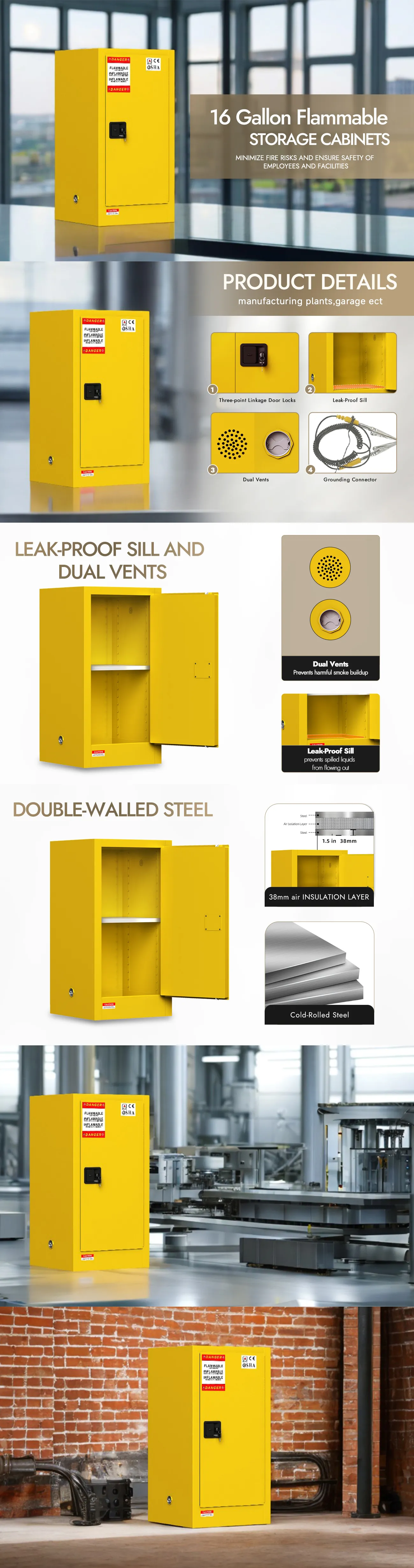 Durable Construction: Our Flammable Cabinets Are Made Of Q235 Cold Rolled Steel Plate With A Fully Welded Steel Body (No Rivets, Screws Or Spot Welds). It Is Both Sturdy And Reduces The Risk Of Fire. The 1-1/2” Air Space Design Keeps Ignition Sources Away From Stored Flammable Liquids, Ensuring Superior Safety.