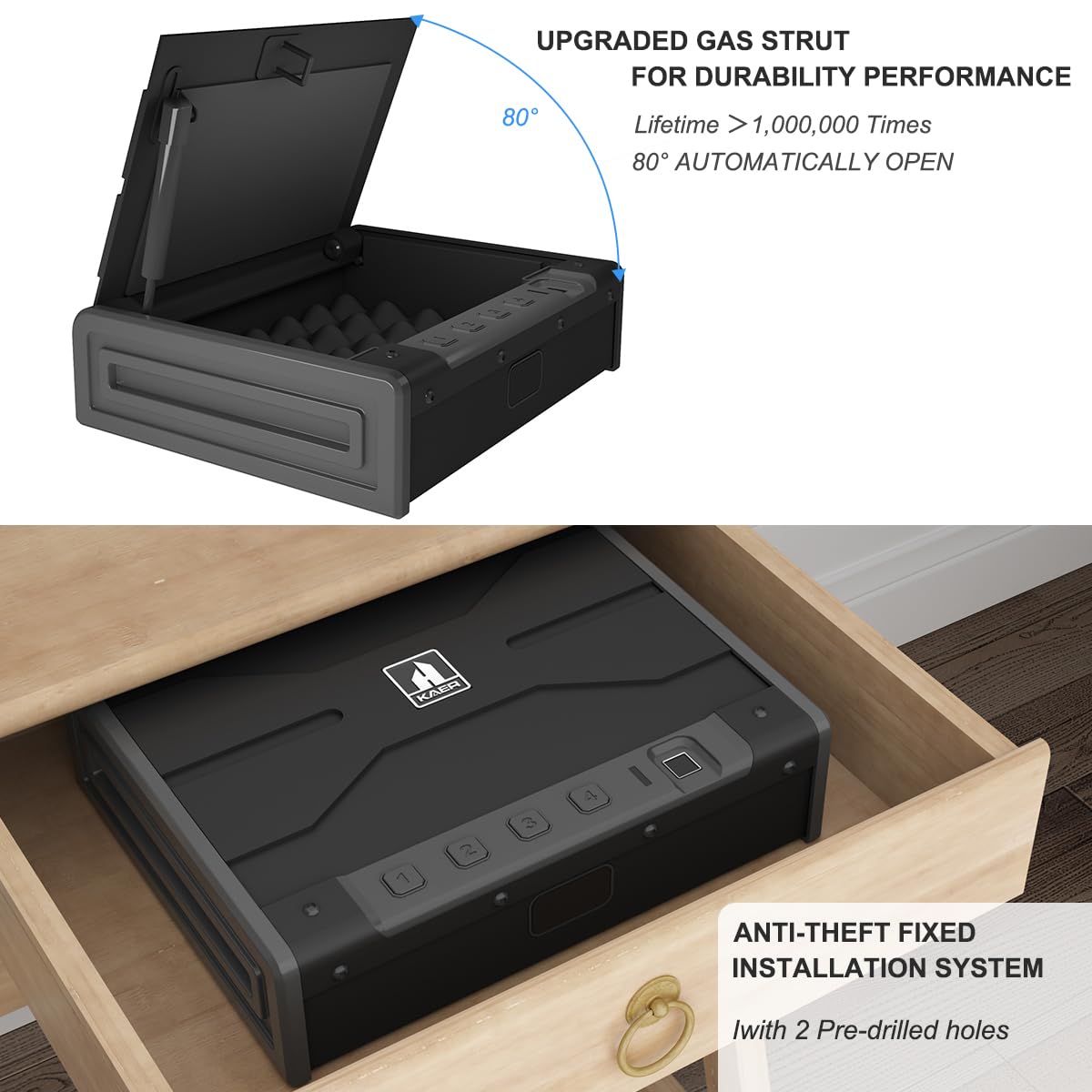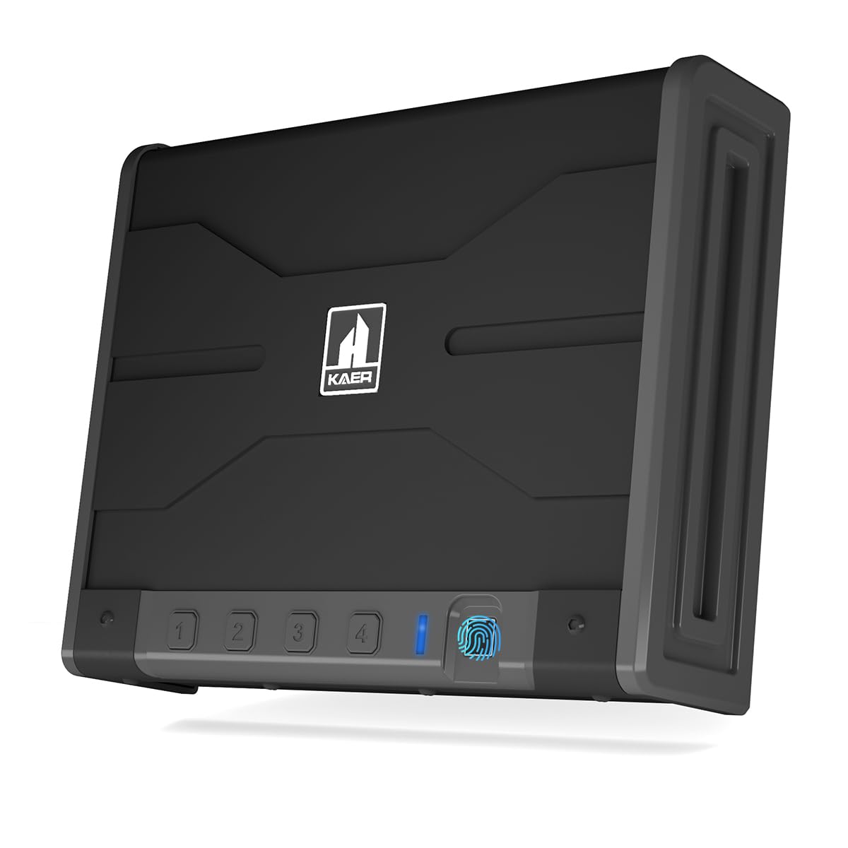 - 3 Ways to Unlock: you can keep this gun safe securely in a drawer, cupboard, trunk or corner and the KAER gun safe with security strap locks it in your car, bedside table or anywhere else that is convenient for you! And with three unlocking options, in addition to the biometric option, you have a keypad lock and 2 spare keys which will ensure that you always have access to your firearm! (Please note, do not put the spare key in the gun safe!)