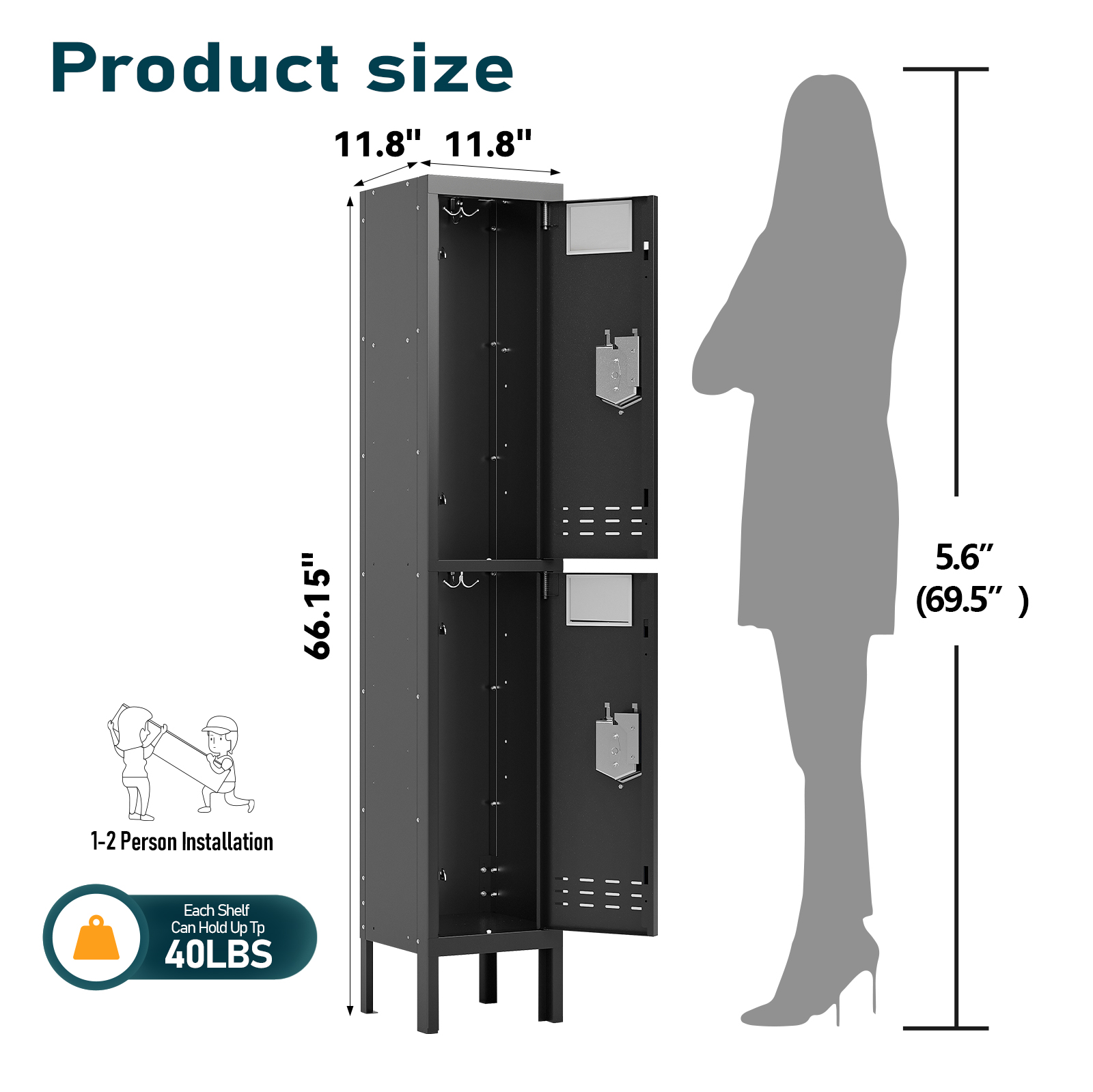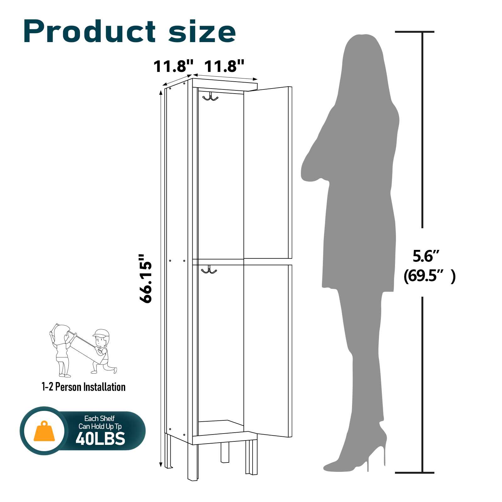 【Lockers with One Door】66'' high lockers size that are 12''wide,12" deep.The lockers have enough space to store clothes,shoes,bags,sports equipment,office supplies, school supplies,cleaning tools, etc