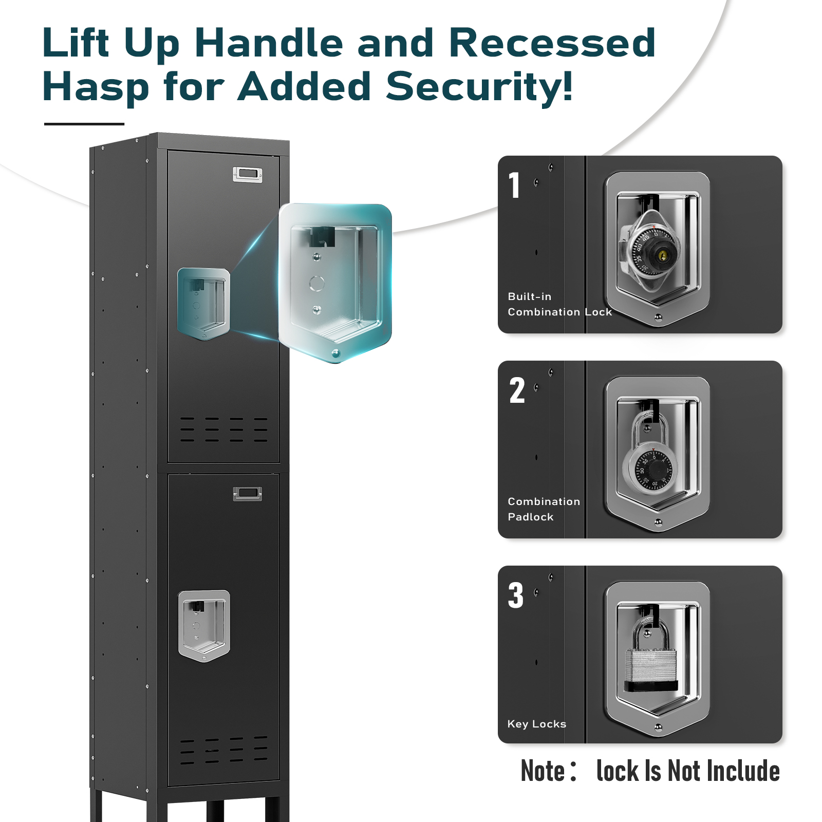【Metal Locker Storage Cabinet】Each locker compartment include a lift up handle and recessed hasp for added security and can accommodate built-in combination or key locks and combination or key padlocks. padlocks.