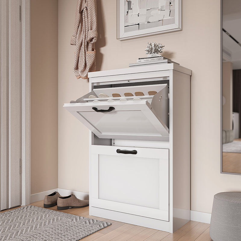 [ Entryway Shoe Cabinet ]: The shoe storage cabinet with 2 flip drawers, simple and stylish appearance makes it a neat and beautiful finish and looks great in many different home styles, and can be used not only as furniture but also as home decoration.